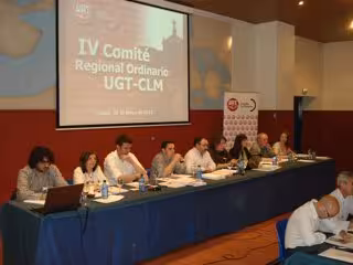 El IV Comité Regional Ordinario de UGT Castilla La Mancha, celebrado en la Escuela de Hostelería de Toledo, ha aprobado con el apoyo del 85,3% de sus miembros el Informe de Gestión de la Comisión Ejecutiva Regional. Además, ha mostrado su apoyo a los trabajadores de la empresa pública GEACAM y ha lamentado "el silencio" de la candidata del PP a la presidencia de la Junta, María Dolores de Cospedal, y su negativa a recibir a los representantes de los docentes.