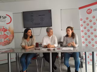 En una rueda de prensa, la secretaria regional de FeSP UGT, Carmen Campoy; la secretaria regional de Salud Laboral y Medio Ambiente de FeSP, Adoración García; y la responsable de relaciones institucionales de Ecoembes, Virginia Moreno, han informado sobre el inicio de la jornada técnica 'La prevención de los riesgos psicosociales en el ámbito laboral. Salud laboral y medio ambiente: Reciclaje y gestión de envases'.