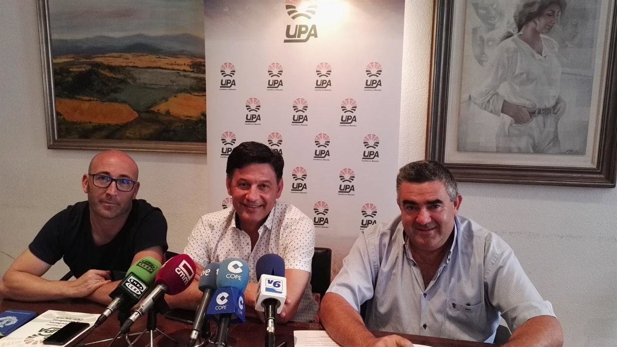 En rueda de prensa, el secretario general de UPA Castilla-La Mancha, Julián Morcillo, acompañado del secretario provincial, Ramón Sáez, y del responsable de UPA seguros en la región, Pedro González, ha destacado la importancia del sistema de seguros agrarios para los profesionales del sector "porque ante un siniestro no hay otra solución".