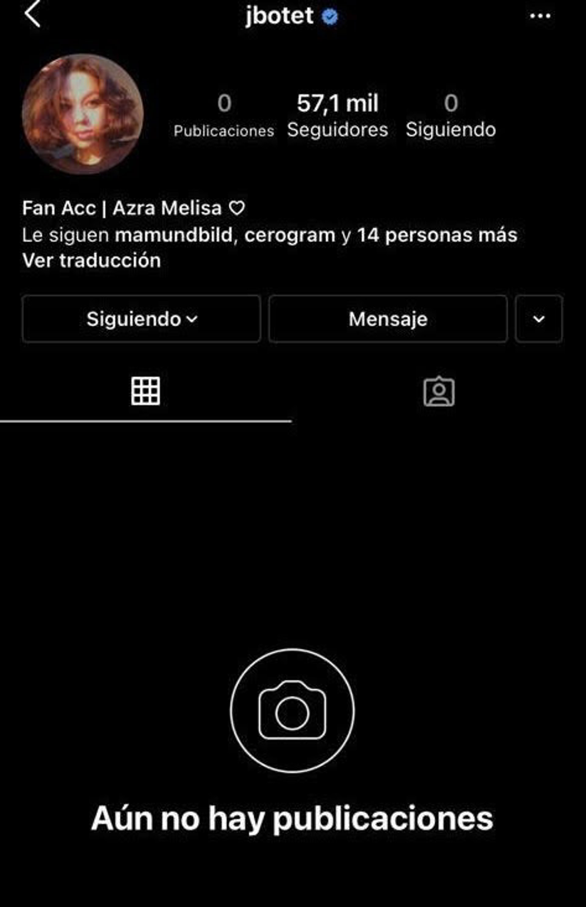 En los últimos días, su cuenta ha sido usurpada por otra identidad, que lo largo de este lunes ha llegado a 'postear' cinco fotografías de una joven que han recibido cientos de comentarios afeándole la conducta. También a lo largo de la tarde las mismas entradas han sido eliminadas. Hasta este mismo lunes, la nueva imagen del perfil de Botet se aparejaba a Melisa Azra.