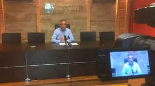 El alcalde de Valdepeñas, Jesús Martín, en rueda de prensa. - AYUNTAMIENTO