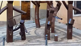 Las figuras de acero de este conjunto escultórico creado por el artista José Luis Martínez, bautizado con el hombre de Turbas Generación y dedicada a los nazarenos de clarín y tambor de la procesión Camino del Calvario, han amanecido con pintadas de símbolos fálicos.