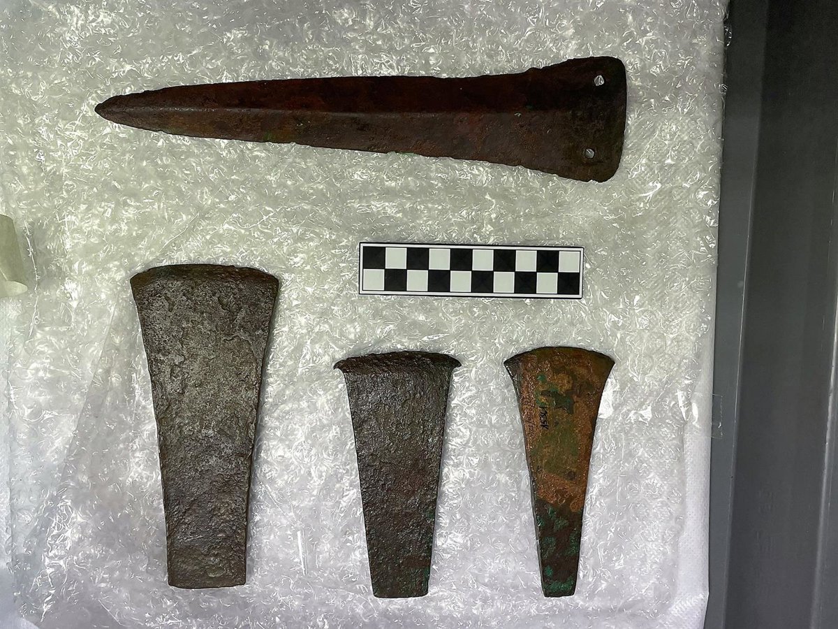 En concreto, el estudio que se está llevando a cabo afecta a cuatro piezas metálicas con base de cobre, un puñal de dos remaches con una espina central en la hoja muy marcada y tres hachas planas de talón, según ha informado el Ayuntamiento en nota de prensa.
