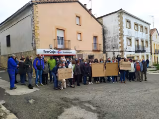 Vecinos de los municipios de la Mancomunidad Alto Tajo se han concentrado este miércoles ante las puertas de la entidad bancaria de Ibercaja en Villanueva de Alcorón (Guadalajara) para pedir que no se vacíe más la España vaciada, tras decidir este banco el cierre del único cajero que permanecía abierto en la localidad y que daba servicio a los diez pueblos incluidos en este órgano mancomunado.