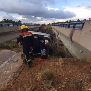 Un vehículo se ha salido de la vía en el punto kilométrico 235 de la A-3, término municipal de Graja de Iniesta (Cuenca), y ha volcado sobre el techo en la mediana junto a un gran viaducto.