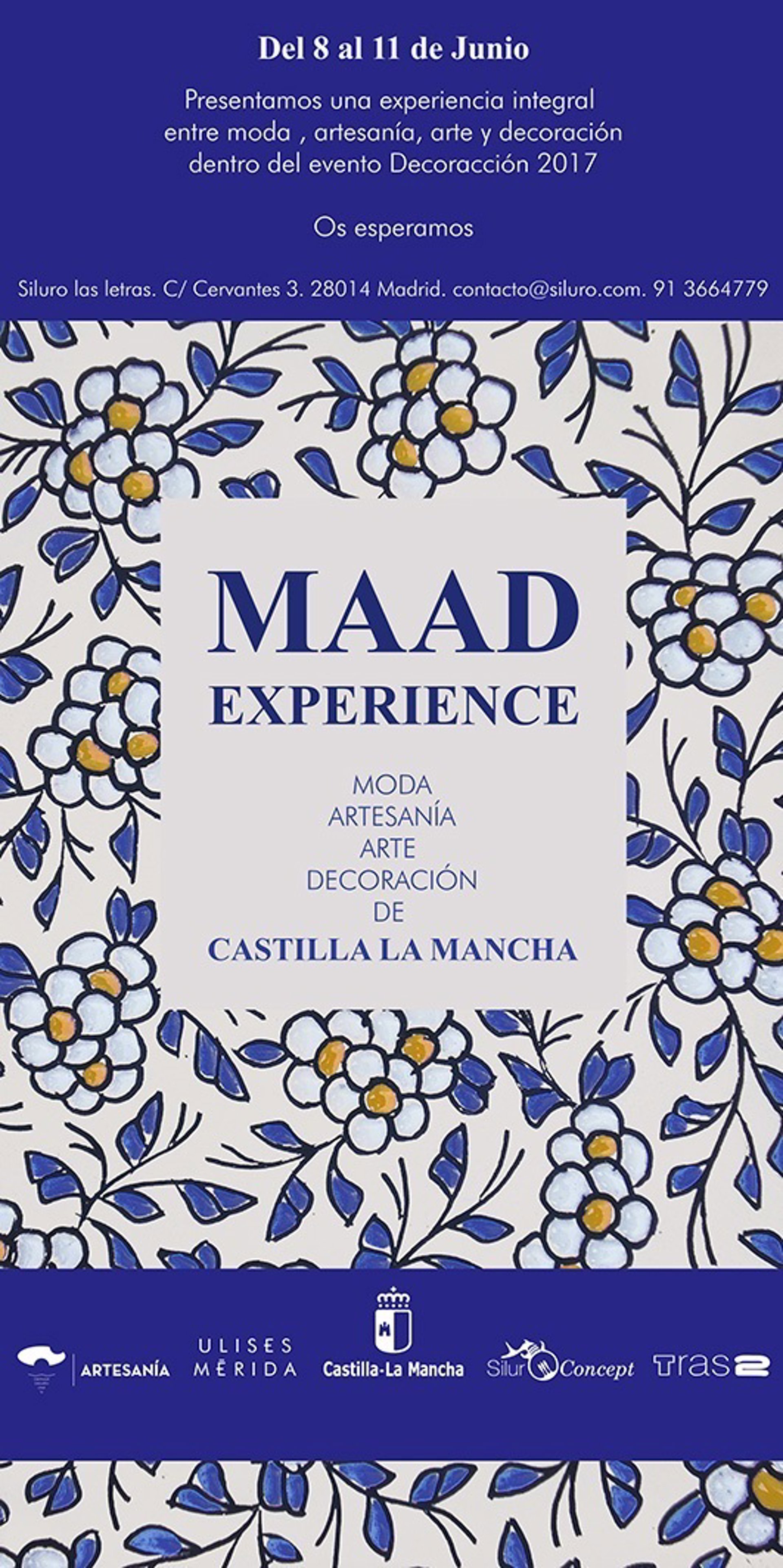 'Maad Experience' cuenta con la colaboración del Gobierno de Castilla-La Mancha, a través de la Dirección General de Turismo, Comercio y Artesanía de la Consejería de Economía, Empresas y Empleo y se celebrará en Siluro Concept, galería de arte y eventos de Madrid que también alberga el atelier y la tienda del reconocido modisto toledano Ulises Mérida, que ha sido uno de los pioneros en aunar estas sinergias en sus diseños junto con Juan Loste, director de Siluro Concept, promotores de esta propuesta.