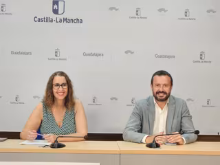 La consejera de Igualdad, Sara Simón y el delegado de la Junta en Guadalajara, José Luis Escudero, en rueda de prensa. - EUROPA PRESS