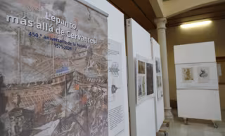 Una veintena de paneles con reproducciones fotográficas reviven los detalles de la Batalla de Lepanto, sus protagonistas y sus consecuencias, en la exposición conmemorativa del 450 aniversario de este hito histórico que estará visible hasta el 19 de noviembre en el patio de la Facultad de Humanidades de Toledo.