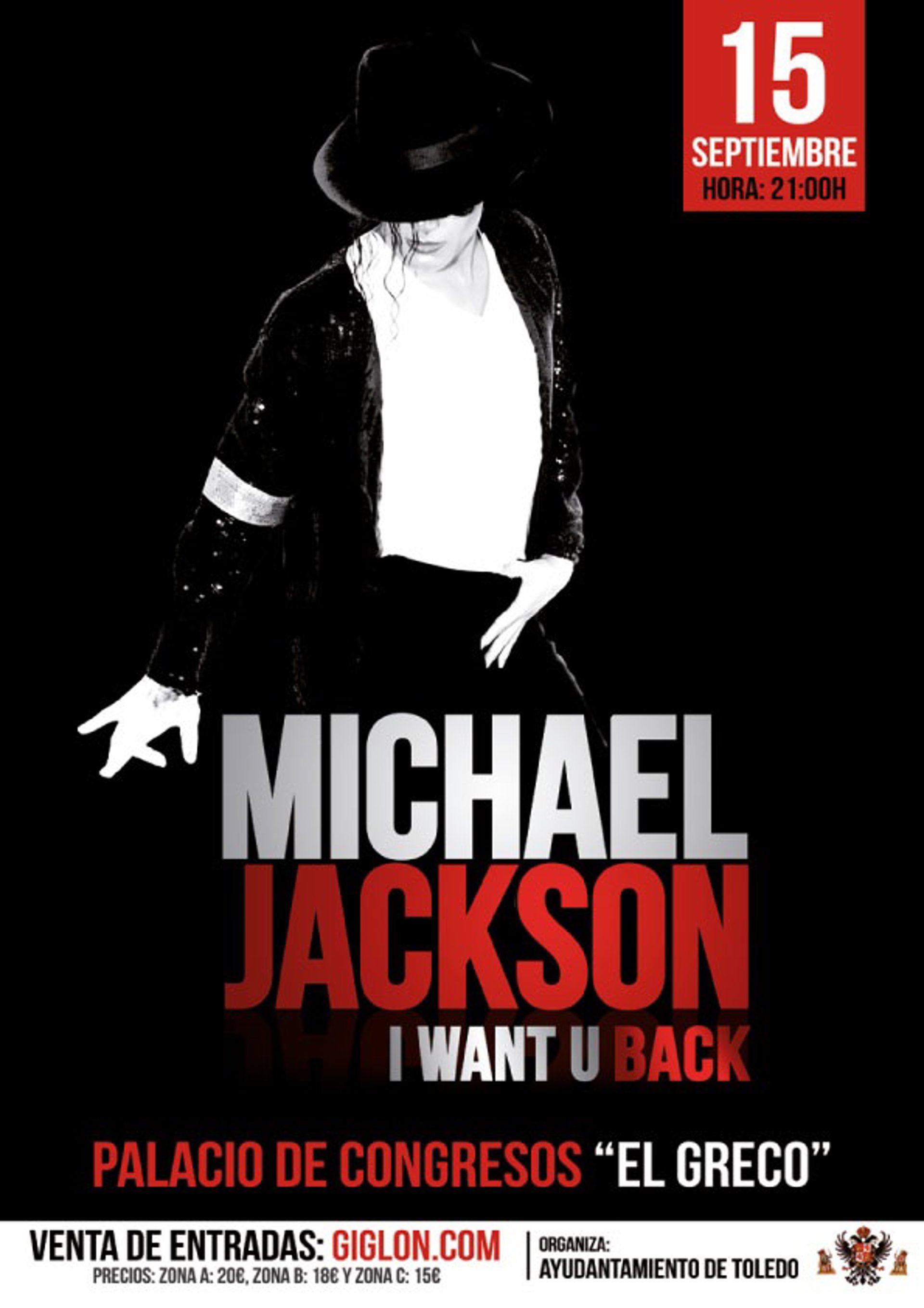 Las entradas para el musical 'Michael Jackson. I want u back' programado por el Ayuntamiento de Toledo como una de las iniciativas del 'Septiembre Cultural' incluida en 'La Noche del Patrimonio', están a la venta desde este miércoles. La cita será el sábado 15 de septiembre a las 21.00 horas en el auditorio del Palacio de Congresos 'El Greco'.