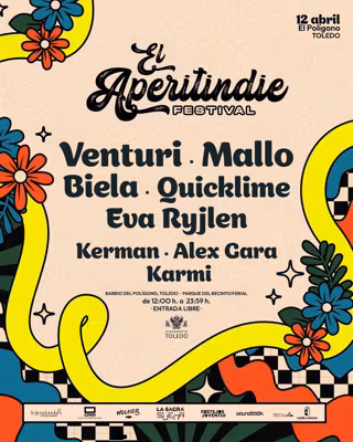 El festival Aperitindie llega este 2025 a su quinta edición y ya ha cerrado el cartel para esta nueva cita, que se celebrará el 12 de abril en el recinto ferial del Polígono de Toledo y contará con Venturi, Mallo, Biela, Quicklime y Eva Ryjlen; así como los Dj Kerman, Alex Gara y Karmi.