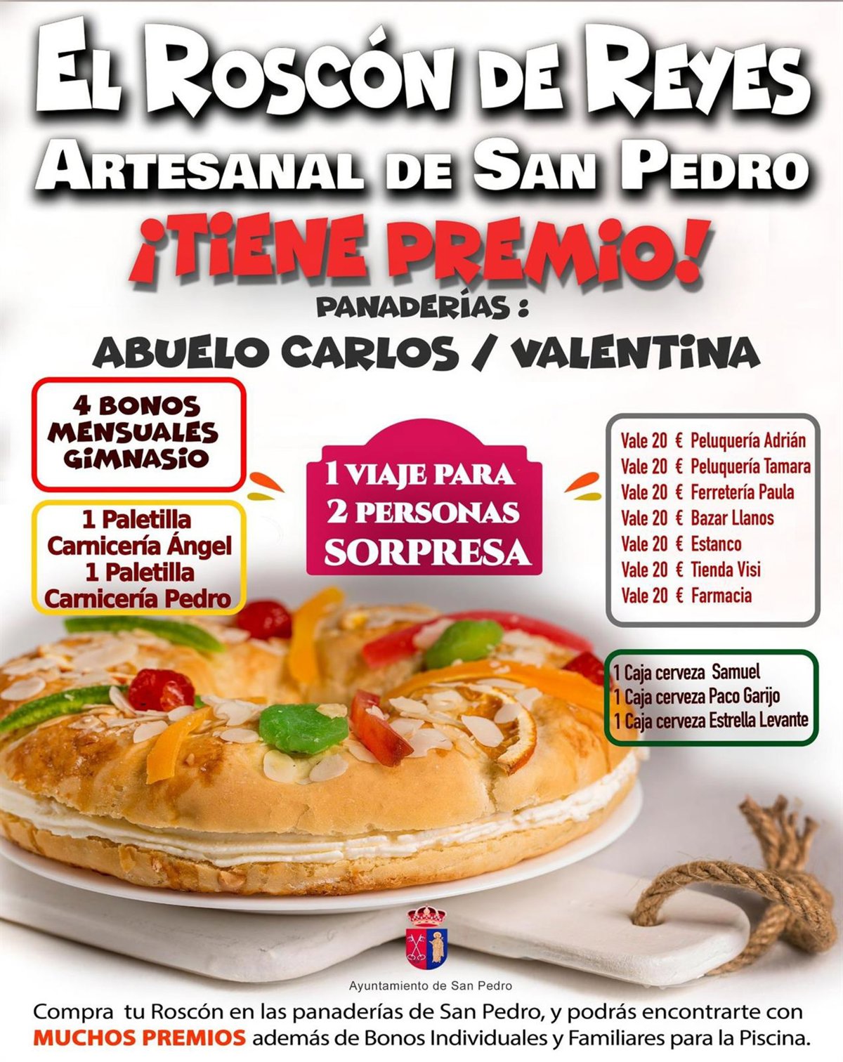 El Ayuntamiento de la localidad albaceteña de San Pedro ha puesto en marcha, un año más, la campaña 'El Roscón de Reyes Artesanal de San Pedro tiene premio', con la colaboración de Panadería Abuelo Carlos y Panadería Valentina.