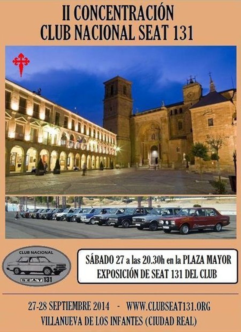 El próximo fin de semana, Villanueva de los Infantes acogerá la II edición de la Concentración del Club Nacional Seat 131, que cuenta con la colaboración del Ayuntamiento a través de la Concejalía de Cultura y Turismo que coordina José Francisco Valverde.