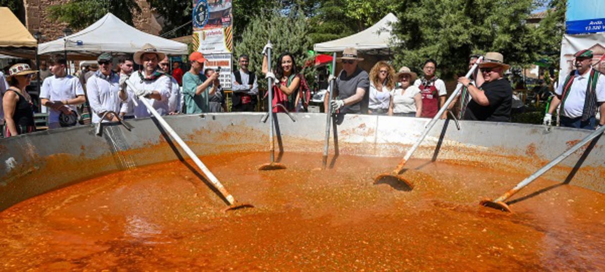 La presidenta de Turinfa, María Luisa Miguel, ha explicado que este año se han utilizado 1.800 kilos de pimiento, 900 de tomate, 300 de carne y 90 litros de aceite virgen, además de la sal y "la magia de los cocineros", que son quienes logran que el plato resulte "rico, rico, rico".
