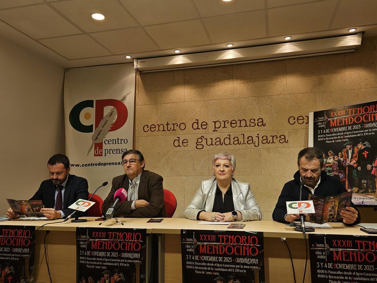 El Tenorio Mendocino ha sido presentado este miércoles por el presidente de la asociación, Felipe Sanz, junto al delegado de la Junta de Castilla-La Mancha en Guadalajara, José Luis Escudero; la diputada de Cultura de la Institución provincial, Rosa María García, y el concejal de Cultura, Javier Toquero, como entidades colaboradoras económica y logísticamente.