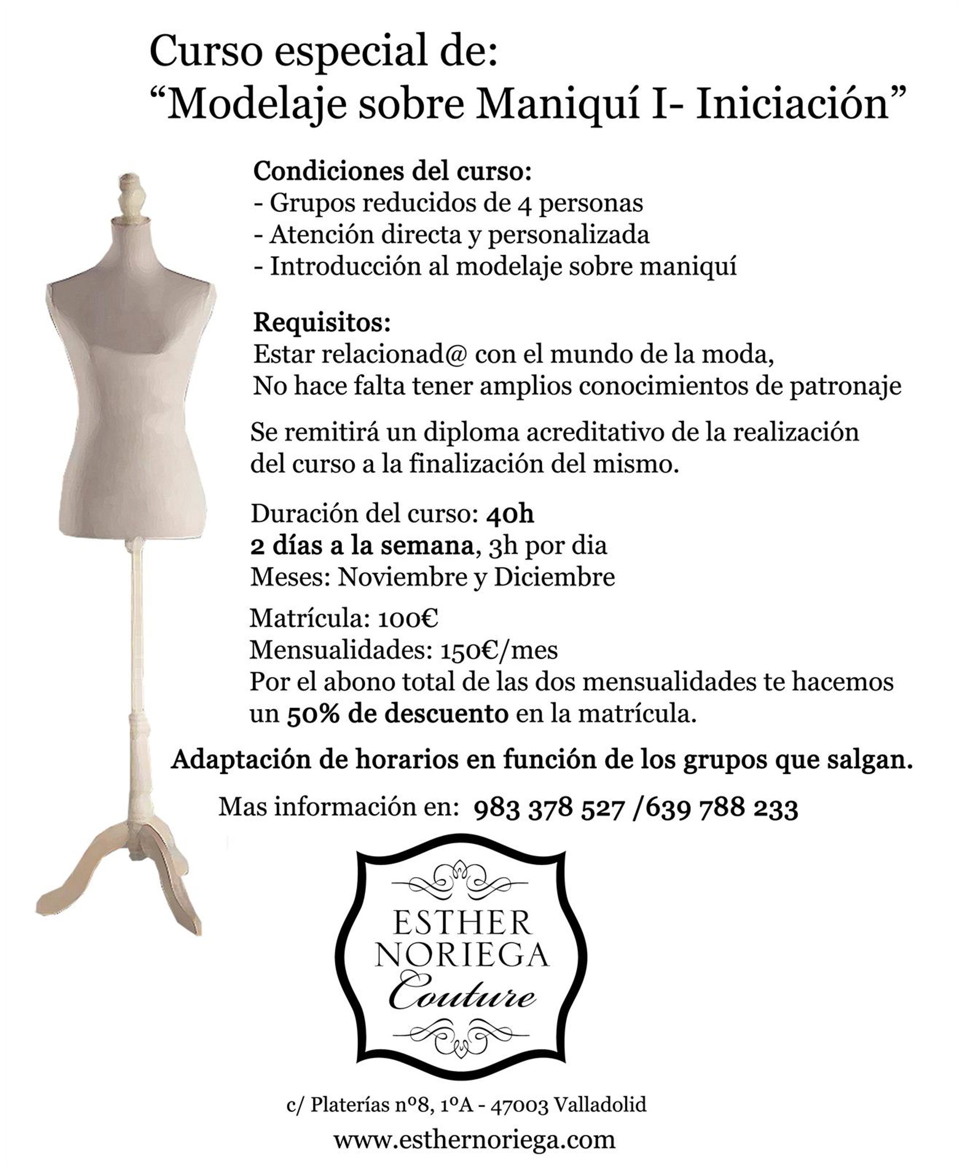 Para aprender modelaje sobre maniquí "no hace falta tener grandes conocimientos de patronaje", ya que se modela con un trozo de tejido el cuerpo de un maniquí para poder sacar un patrón base sobre el que trabajar y "dar rienda suelta" a la imaginación.