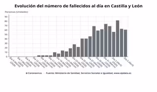 Gráfico de elaboración propia sobre la evolución de los fallecidos al día en CyL a 6 de abril - EPDATA