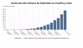 Gráfico de elaboración propia sobre la evolución de fallecidos por coronavirus en CyL a viernes 27 de marzo - EPDATA