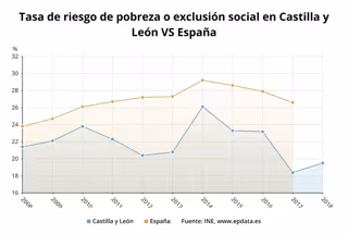 No obstante, Castilla y León registra un repunte de siete décimas respecto al porcentaje que computó en la estadística del pasado año cuando la tasa de personas en riesgo de pobreza se situó en el 15,4 por ciento.