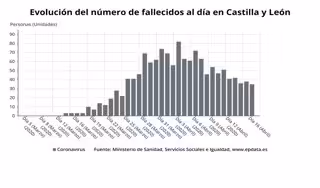 Gráfico de elaboración propia sobre la evolución del número de fallecidos al día en CyL a 17 de abril - EPDATA