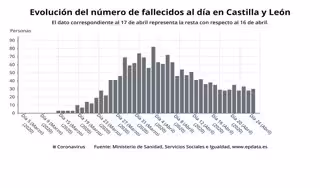 Gráfico de elaboración propia sobre la evolución del número de fallecidos al día por COVID en CyL a 24 de abril - EPDATA