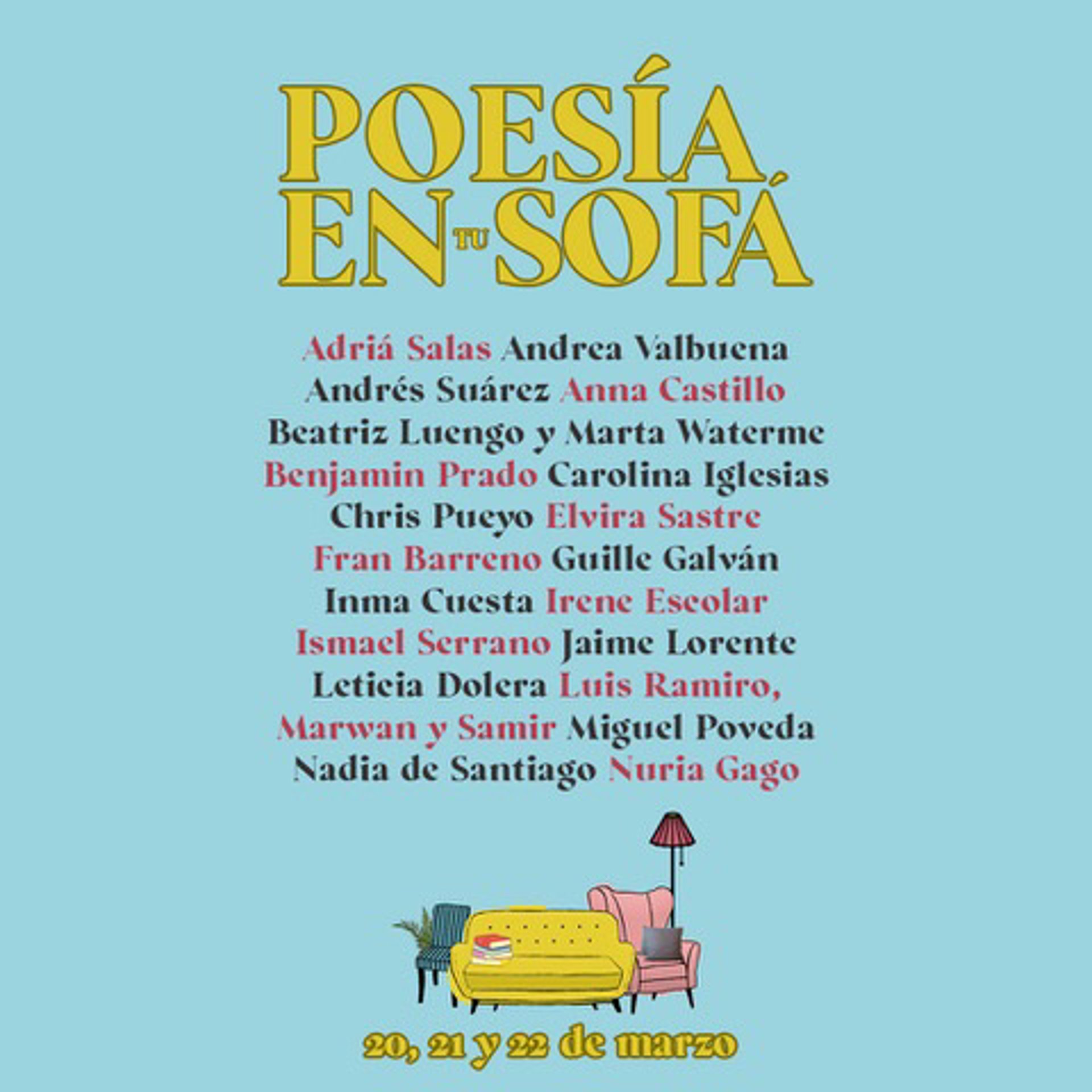 Cerca de una treintena de poetas, músicos, actores y, en general, personalidades del mundo de la cultura, participarán este fin de semana en la iniciativa #PoesíaEnTuSofá, un festival virtual que pretende combatir la cuarentena a ritmo de verso y que se celebrará a través en Instagram los días 20, 21 y 22 de marzo, coincidiendo con el Día Internacional de la Poesía.
