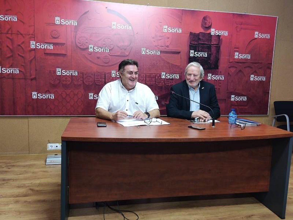 El responsable de festejos del Ayuntamiento de Soria, José Luis Ruiz, junto al concejal de Cultura, Jesús Bárez, han presentado la programación que arranca este fin de semana, el sábado 24 de septiembre, con el XIV Encuentro de Encajeras de Bolillos en la plaza Mayor, que se trasladará a otro especio en caso de lluvia.
