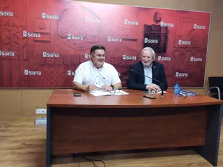 José Luis Ruiz (izda) y Jesús Bárez presentan el programa de las fiestas de San Saturio de soria. - EUROPA PRESS