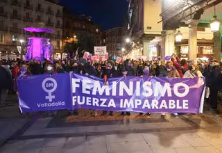 Con una manifestación que ha comenzado en la Plaza Fuente Dorada pasadas las 20.00 horas se ha puesto el broche a una jornada reivindicativa por el Día Internacional de la Mujer. Una gran pancarta con el lema 'Feminista fuerza imparable' que portaban integrantes de la Coordinadora de Mujeres de Valladolid --convocantes de esta movilización-- ha ido abriendo camino a los miles de participantes de la misma que han coreado consignas como 'la lucha será feminista o no será' o 'ni un paso atrás por nuestros derechos'.