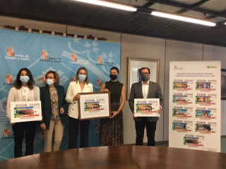 La delegada territorial de la Junta en Zamora, Clara San Damián, la directora general de Turismo de la Junta, Estrella Torrecilla, y el delegado territorial de la ONCE en Castilla y León, Ismael Pérez, han presentado esta serie de cupones, en un acto que ha tenido lugar en Zamora, y en el que han estado acompañados por la presidenta del Consejo Territorial ONCE, Rosa Rubio, y la directora de ONCE en Zamora, Esther Pérez.