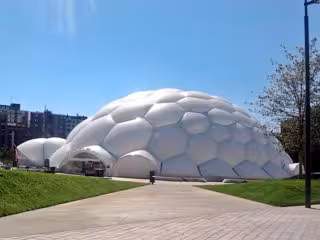 La Cúpula del Milenio, situada en la Plaza del Milenio, constituye una estructura cubierta y climatizada, de 1.700 metros cuadrados, de carácter multifuncional y polivalente. Su diámetro exterior es de 46,5 metros, el interior de 42,5 y una altura máxima de 16 metros.