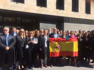 Abogados y procuradores se han concentrado este viernes en la puerta de los Juzgados de Valladolid para mostrar su apoyo a sus compañeros catalanes "frente al desafío golpista" de los independentistas.