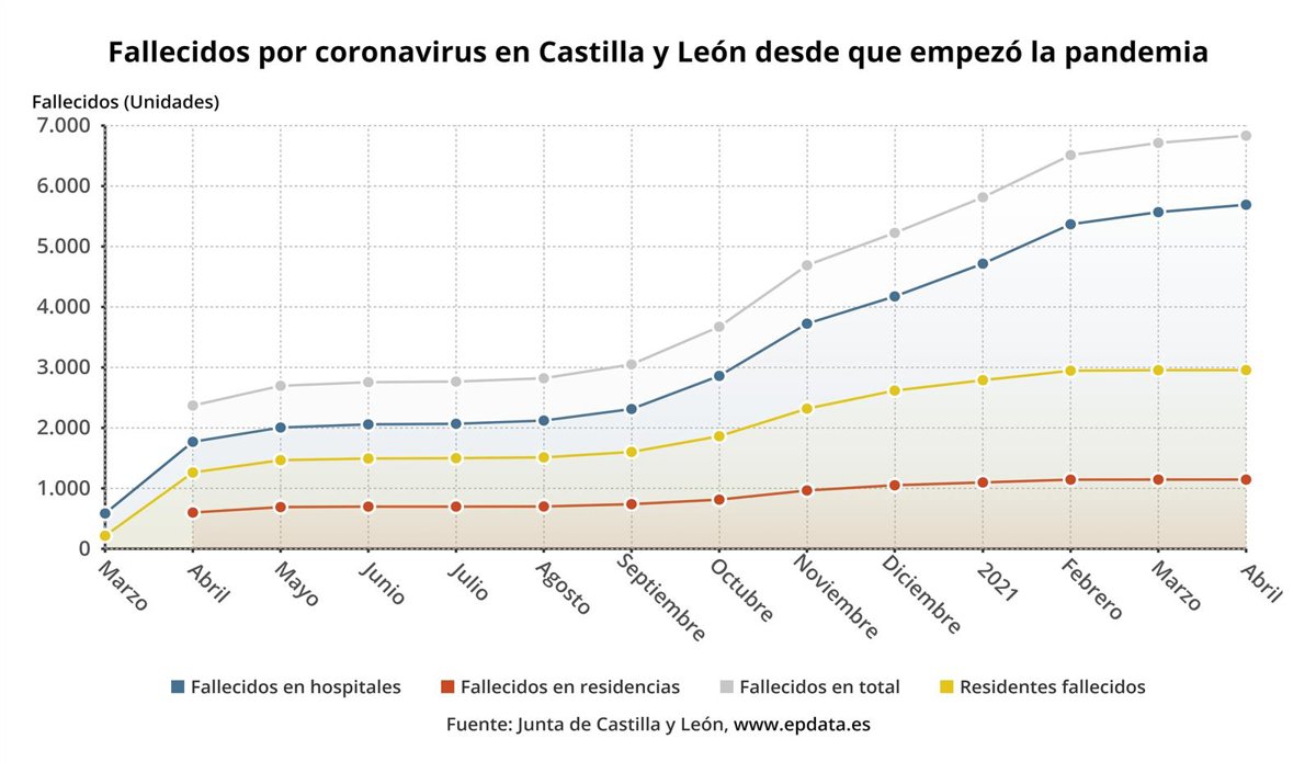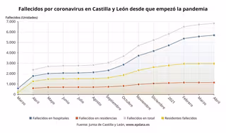 El mes de abril de 2021, el décimocuarto de la pandemia del coronavirus, ha cerrado con los datos más reducidos en cuanto a fallecimientos en muchos de los registros que se pueden observar, como es el caso de la situación en los centros residenciales y en la estadística de mortalidad total vinculada al COVID-19 que ofrece el portal de Datos Abiertos de la Junta de Castilla y León.