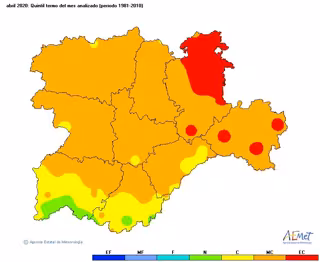 En concreto, abril fue muy cálido en la mayor parte de Castilla y León, con una anomalía positiva en torno a los 2 grados, si bien en algunas zonas del extremo sur se mantuvo con un carácter cálido,