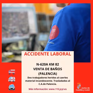 Los hechos han ocurrido alrededor de las 23.38 horas del domingo, 11 de mayo, cuando se informó de un accidente en una empresa de materiales de construcción situada en el kilómetro 82 de la N-620 en Venta de Baños donde dos personas habían resultado heridas al saltarles material incandescente cuando realizaban labores de limpieza en una torre.