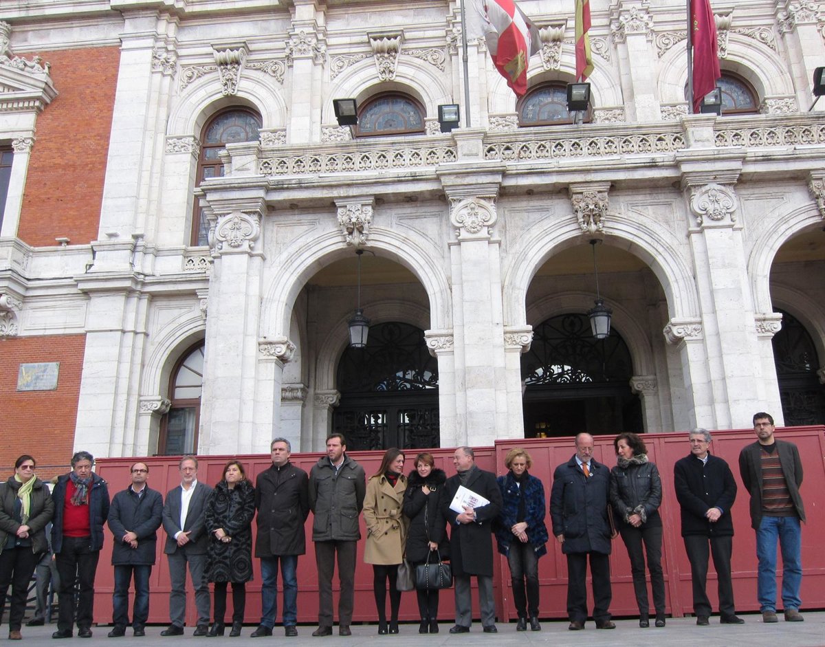 El alcalde y concejales de los tres grupos que forman parte de la Corporación municipal del Ayuntamiento de Valladolid han guardado este miércoles un minuto de silencio en la Plaza Mayor de la ciudad en recuerdo de las víctimas del accidente aéreo del vuelo 4U9525 de Germanwings entre Barcelona y Dusseldorf que se estrelló este martes en una zona montañosa de los Alpes franceses.