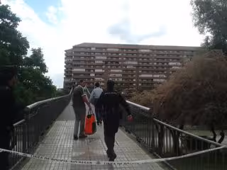 Efectivos de la Policía Nacional han acordonado la zona de la pasarela donde tirotearon ayer a la presidenta de la Diputación de León, Isabel Carrasco, porque previsiblemente en los próximos minutos se iniciarán las labores de búsqueda del arma homicida en el río Bernesga.
