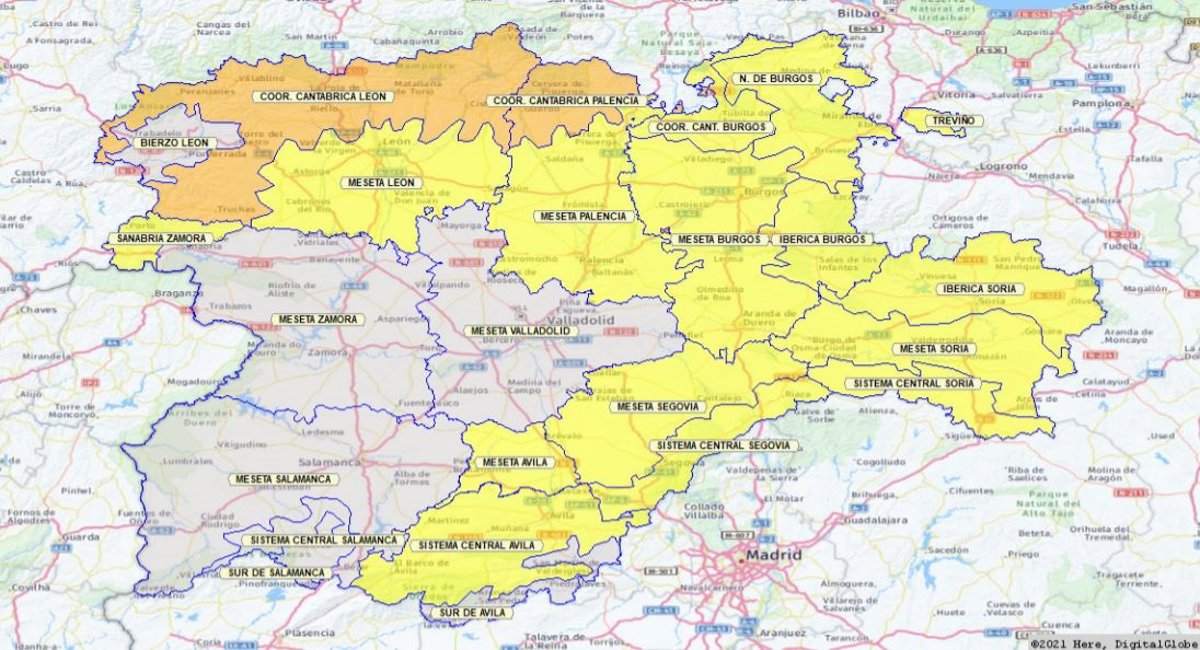 En total, son 22 las vías afectadas por la nieve en las provincias de Ávila, Burgos, León, Palencia, Segovia, Salamanca y Soria. En Burgos cinco puertos de montaña están intransitables, (nivel negro), y hay otras cinco vías en nivel rojo en Burgos, León, Palencia y Segovia, y cinco más en amarillo, en León, Palencia y Soria.
