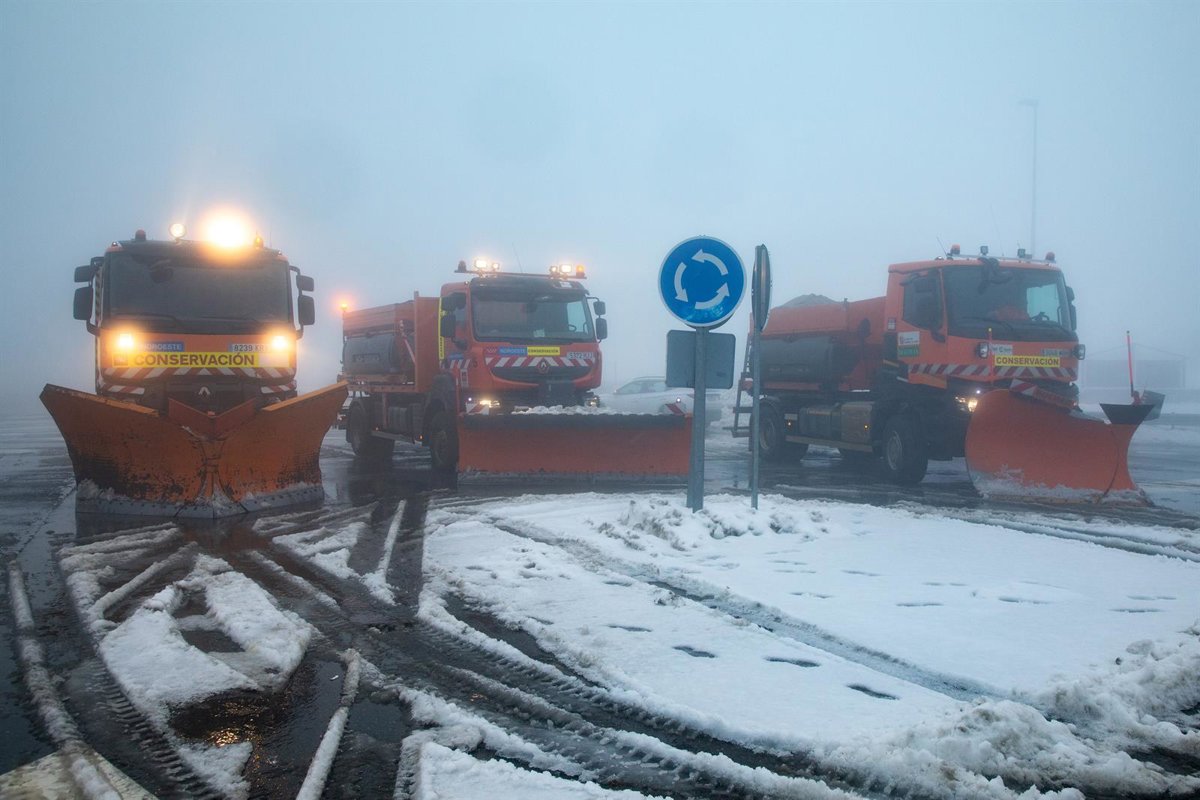 El Ministerio de Transportes y Movilidad Sostenible ha activado un dispositivo de vialidad invernal para carreteras consistente en 639 equipos quitanieves y 114.089 toneladas de fundentes para hacer frente a las nevadas previstas para este fin de semana en Castilla y León y Madrid.