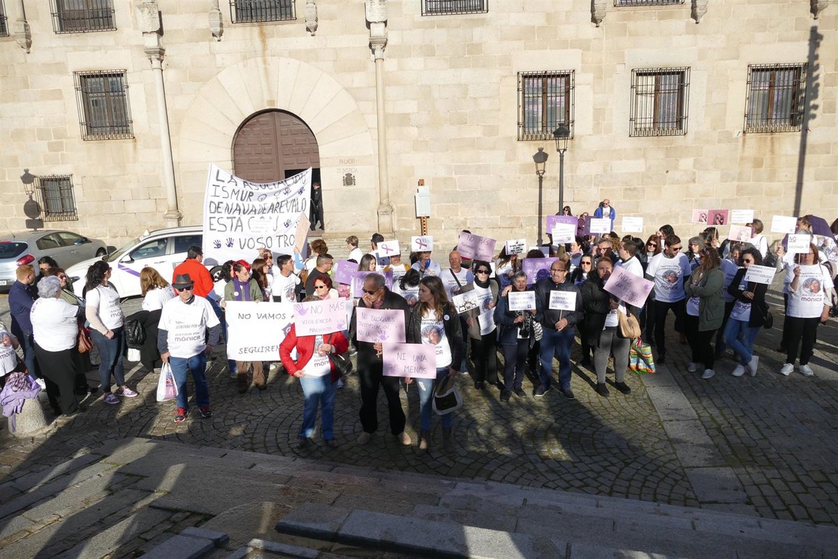 Muchos de los concentrados proceden de la localidad natal de la mujer fallecida, Nava de Arévalo, y entre todas las pancartas destacaba una con una foto de la mujer y la leyenda "Justicia por Mónica".