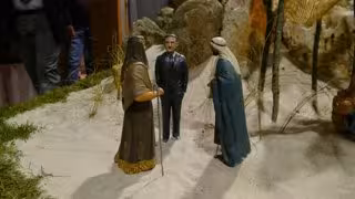 La figura de Suárez aparece en el desierto junto a dos árabes, mientras que Santa Teresa puede vérsela en otro punto del nacimiento, según el Consistorio.
