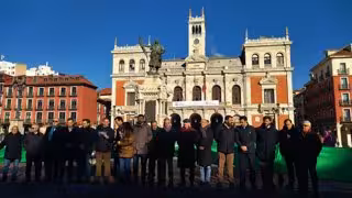 Durante la lectura del manifiesto, Ángel Miranda ha estado rodeado de diferentes personalidades de la Asociación Española contra el Cáncer y concejales del Ayuntamienrto de Valladolid.