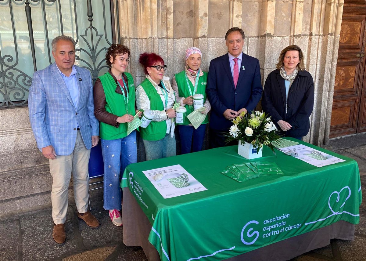 El alcalde de Salamanca ha participado un año más en el Día de la Cuestación desde la mesa instalada en los soportales de la Plaza Mayor donde ha subrayado el "coraje y la valentía" de pacientes, familiares y red sanitaria.
