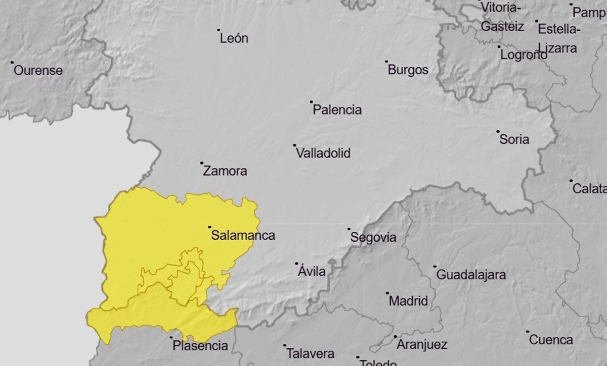 Este aviso también se mantendrá activo hasta las 23.59 horas en la meseta, el sistema central y el sur de la provincia salmantina por lluvias que podrían dejar hasta 40 litros por metro cuadrado en doce horas.