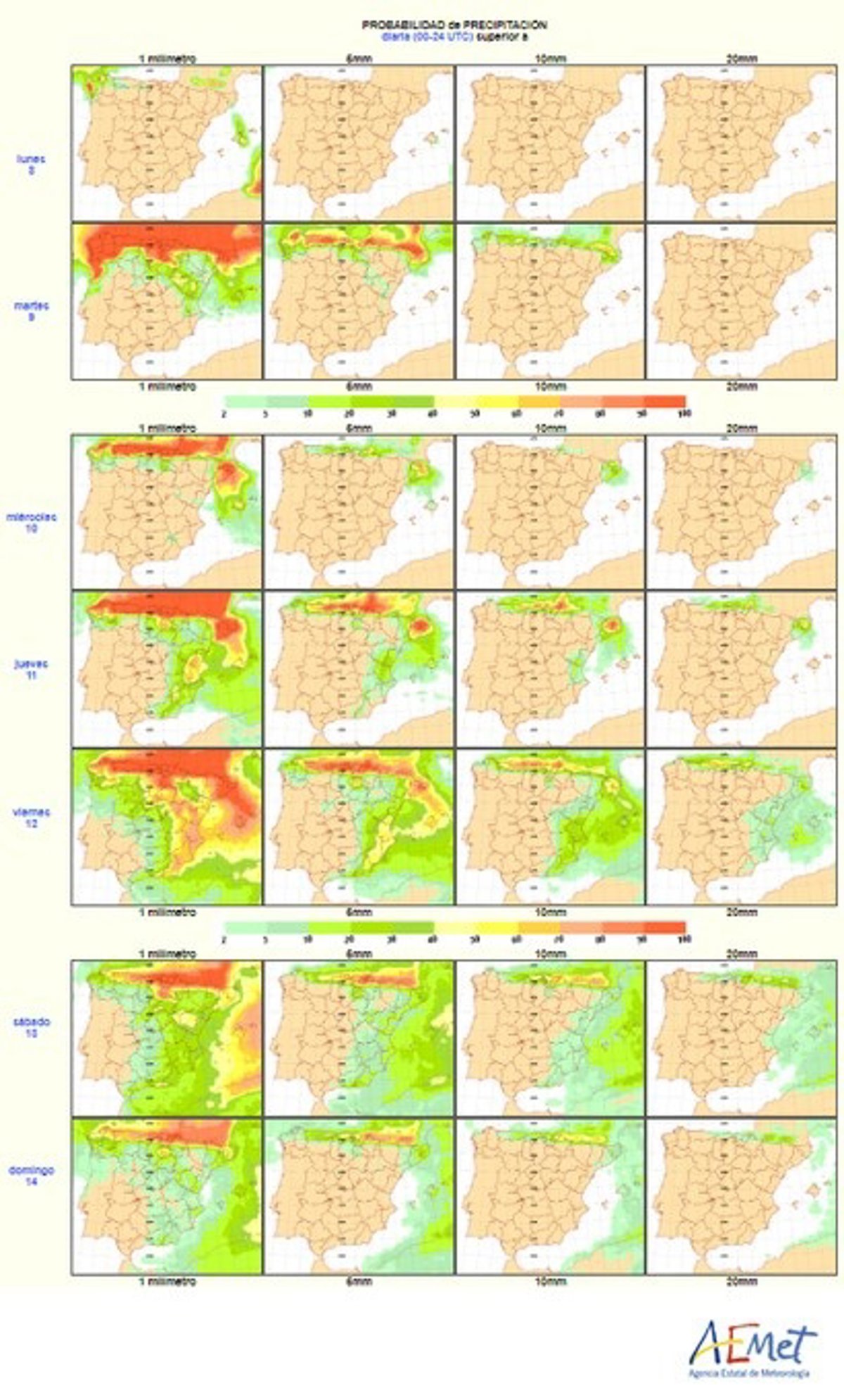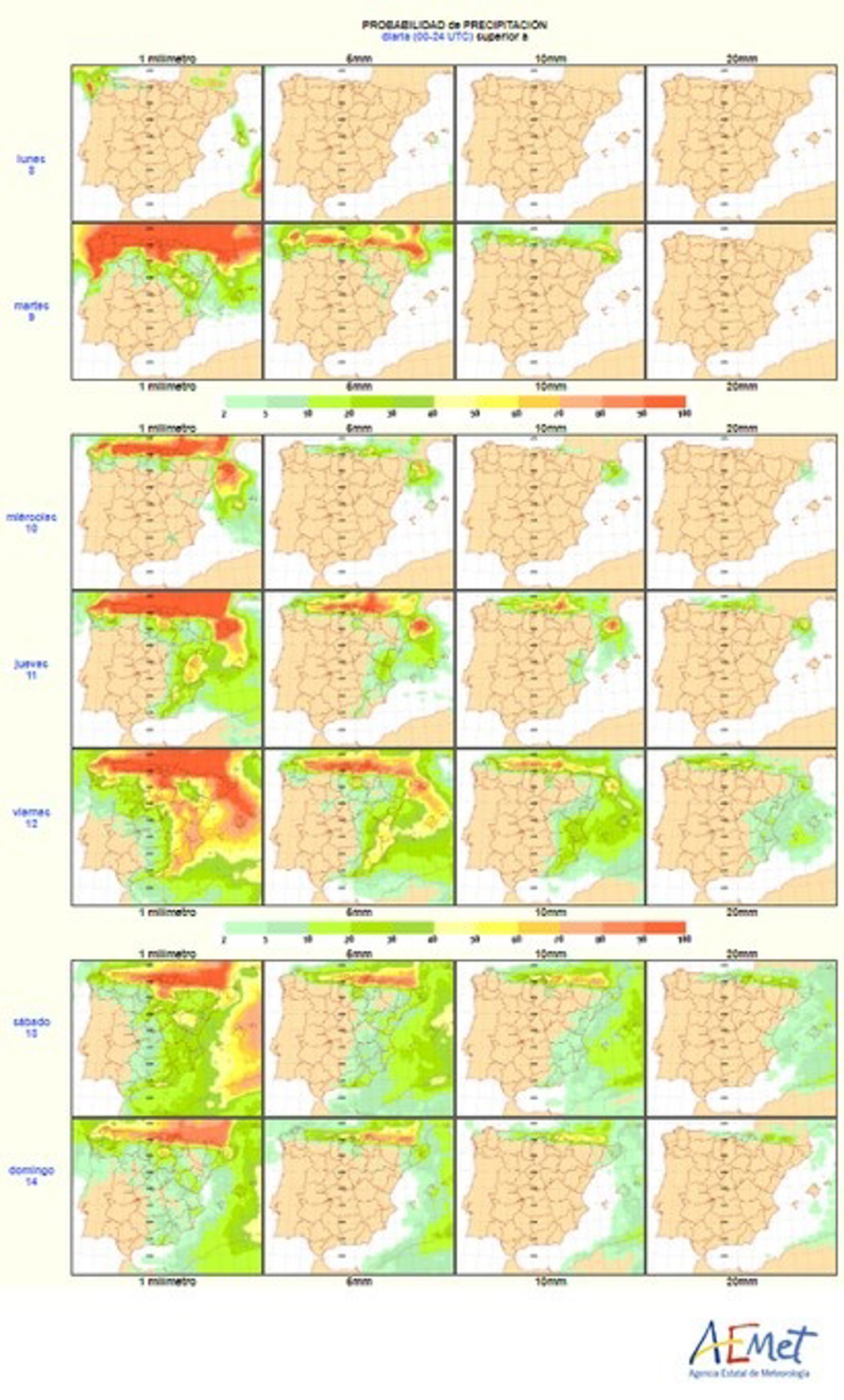 Mapas elaborados por la Aemet sobre la previsión de semana seca en CyL - @AEMET_CYL