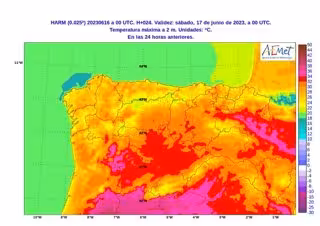 Según los datos aportados por la Aemet y consultados por Europa Press, en los Valles del sur de Ávila y Salamanca las temperaturas máximas rondarán los 35 grados centígrados y en el Valle del Duero los 32 grados.