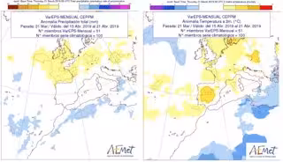Por otro lado y según las primeras previsiones de la Aemet para la Semana Santa, que se actualizarán la próxima semana, el primer anticipo contempla "temperaturas más altas de lo normal" sin precipitaciones generalizadas o persistentes aunque sí algunos chubascos locales y de corta duración.