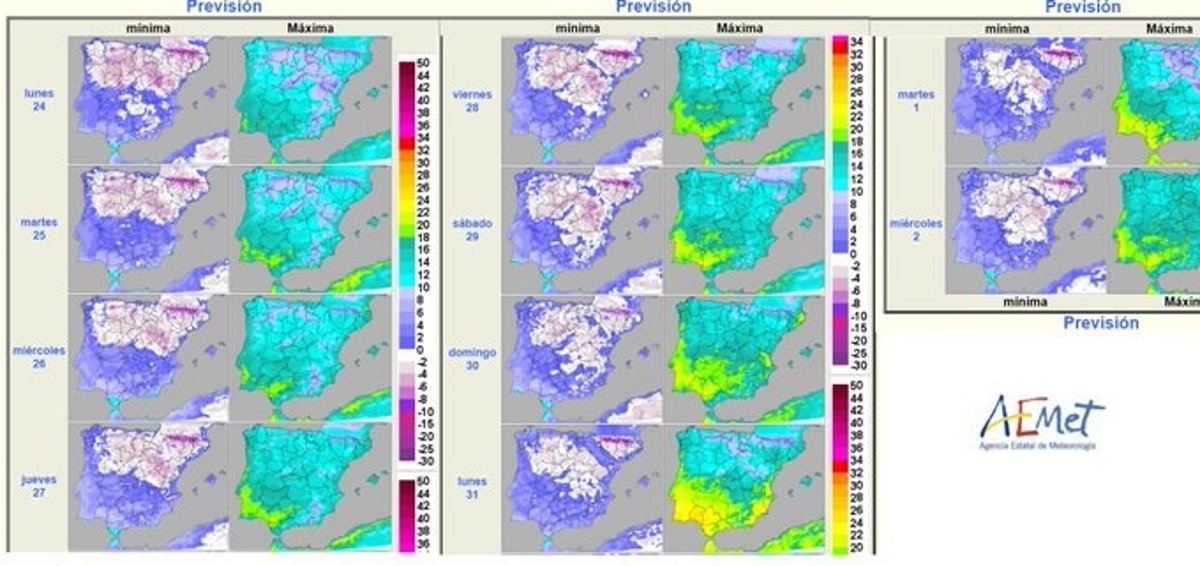 Mapas facilitados por la Aemet sobre la previsión de frío en CyL durante los próximos diez días - @AEMET_CYL