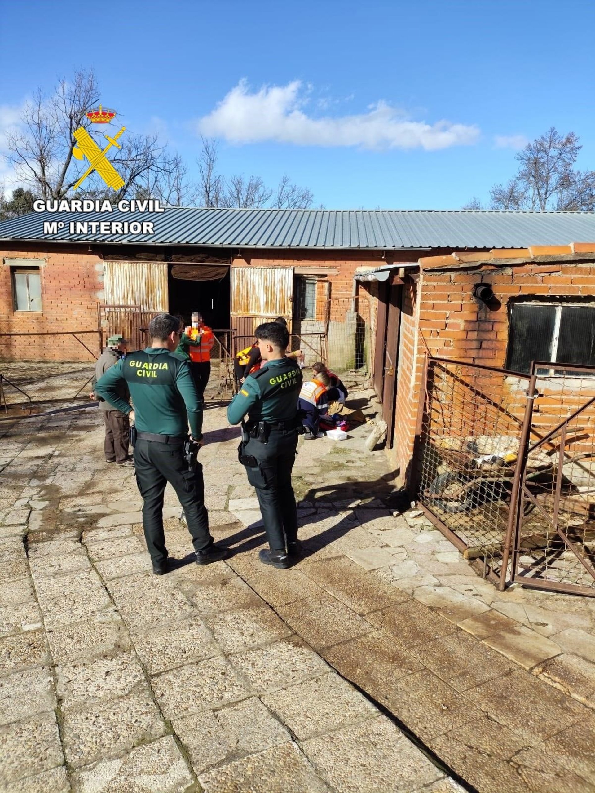 Agentes, en la explotación ganadero donde han salvado la vida a un varón de 76 años. - GUARDIA CIVIL