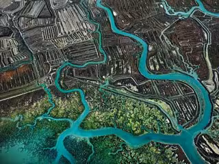 Para ello, Burtynsky recorrió los cinco continentes entre 2009 y 2014, desde el Golfo de México a las orillas del Ganges, para representar el ciclo de vida del agua. Durante este tiempo, siguió el curso de los ríos y estudió los mares, describió los diferentes usos del agua, desde la agricultura a la adoración, "y nunca se conformó en llegar sólo a la superficie de las cosas, como es su estilo".