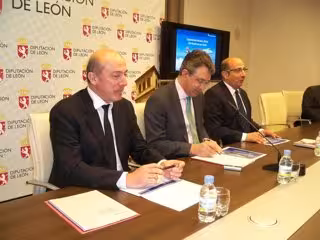 El presidente de la Diputación de León, Juan Martínez Majo, acompañado del vicepresidente, Francisco Castañón, y del director comercial de Air Nostrum, Juan Corral, han presentado esta campaña de verano para que el Consorcio del Aeropuerto, del que forman parte la Institución provincial y Ayuntamiento de León, ha destinado 678.000 euros.